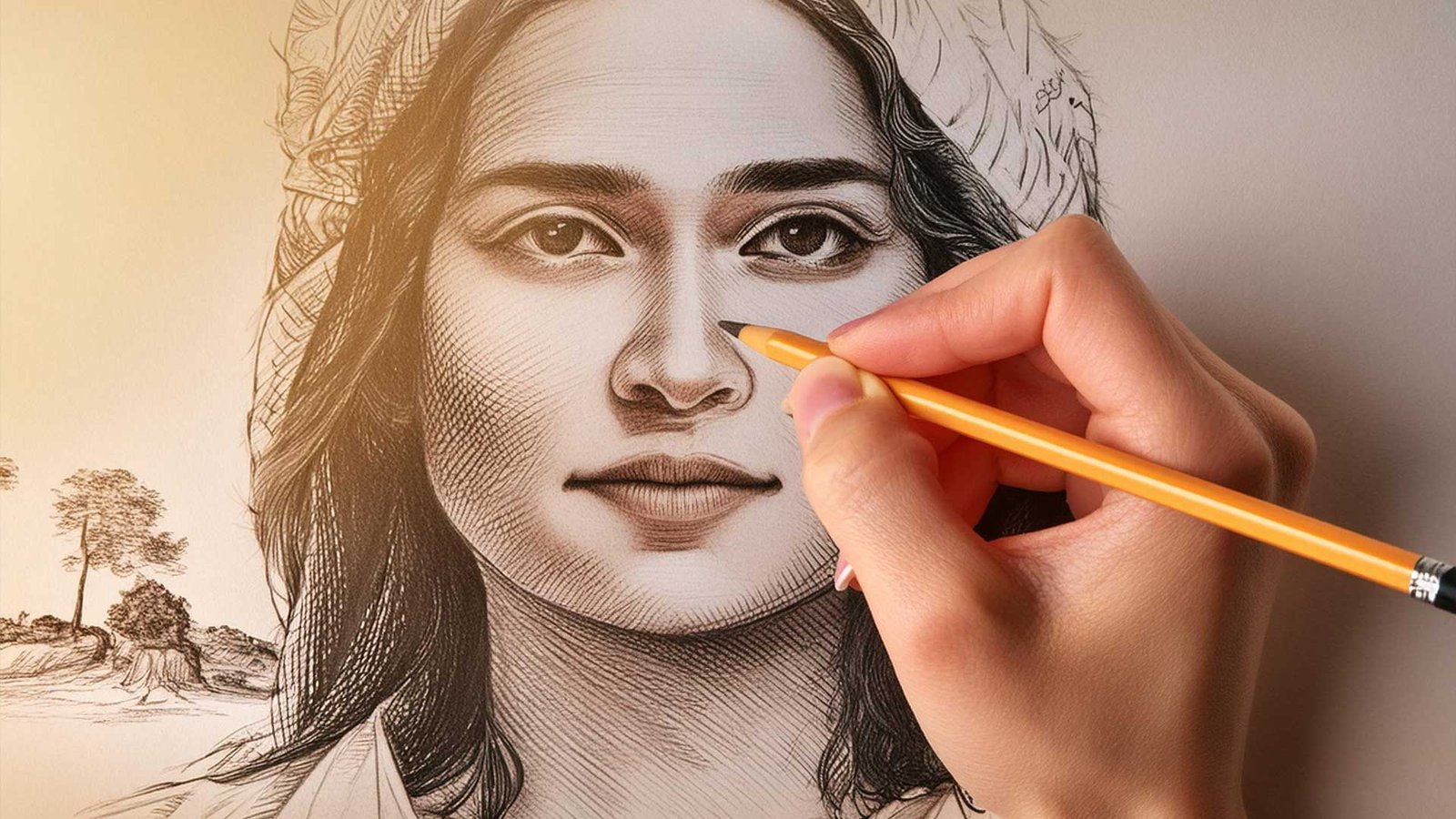 Simple portrait drawing techniques. Learn about the materials and tools used to make human portraits. Understand the simple techniques to bring out appealing results.